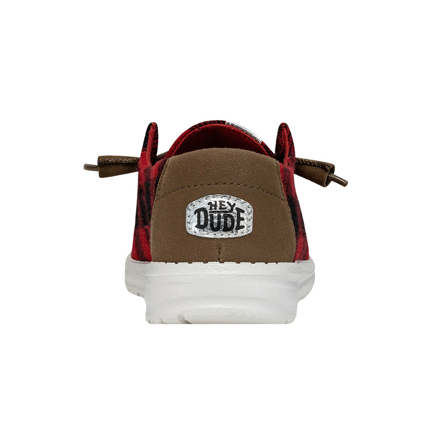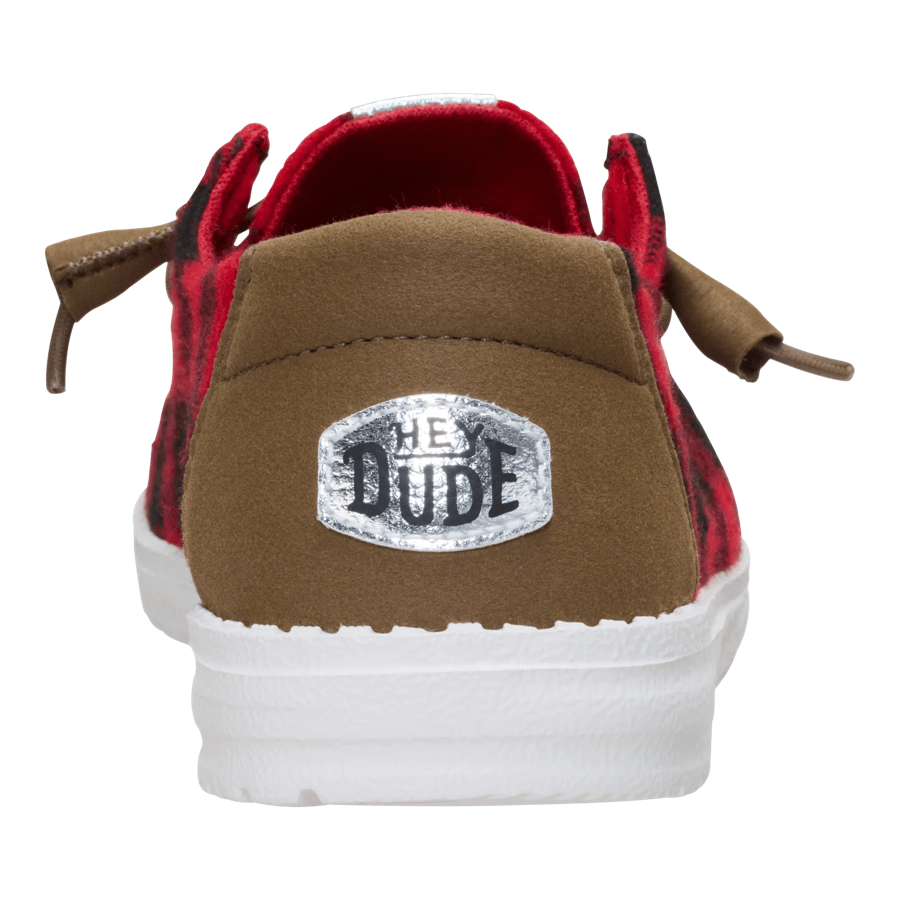 The Wendy Buffalo plaid is coming in *crisp*. Ourmost popular HEYDUDEmocgets an update withiconic buffalo-plaid prints in fresh new hues. A naturalheel pop expands your outfit-pairing horizons. Acushioning foam insole and lightweight. flexibleoutsole combine for aaahs. Just add elastic laces forultimate slip-on ease.
