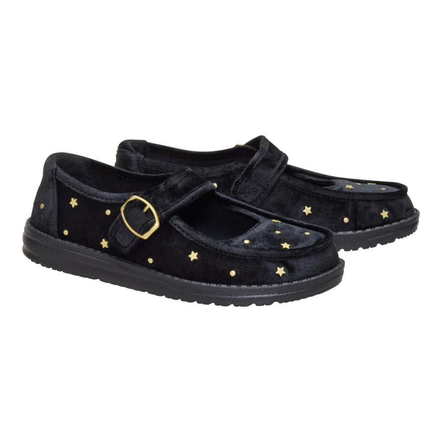 Make spirits bright with the Wendy Jane Holiday—your go-to shoe for festive flair and all-day comfort! Dressed up with a touch of shimmer and just the right amount of holiday magic. this seasonal stunner is perfect for decking the halls. dashing through the mall. or jingling all the way to your next party. With its lightweight feel. easy slip-on style. and just a hint of glam. the Wendy Jane Holiday brings the joy of the season to every step—no heels or blisters required.